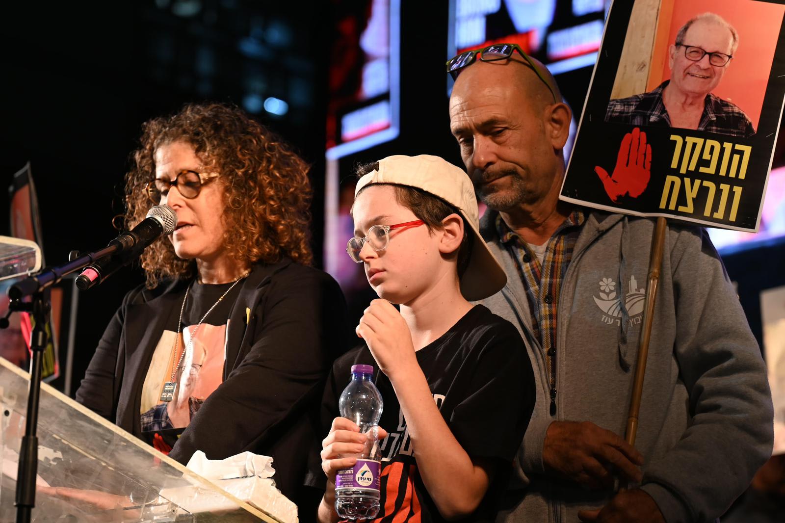 Among the speakers that night was Keren Munder, who was held hostage with her 9-year-old son, Ohad, for 49 days. Her father, Avraham Munder, was murdered in captivity. His body was found and returned to Israel for burial in August.