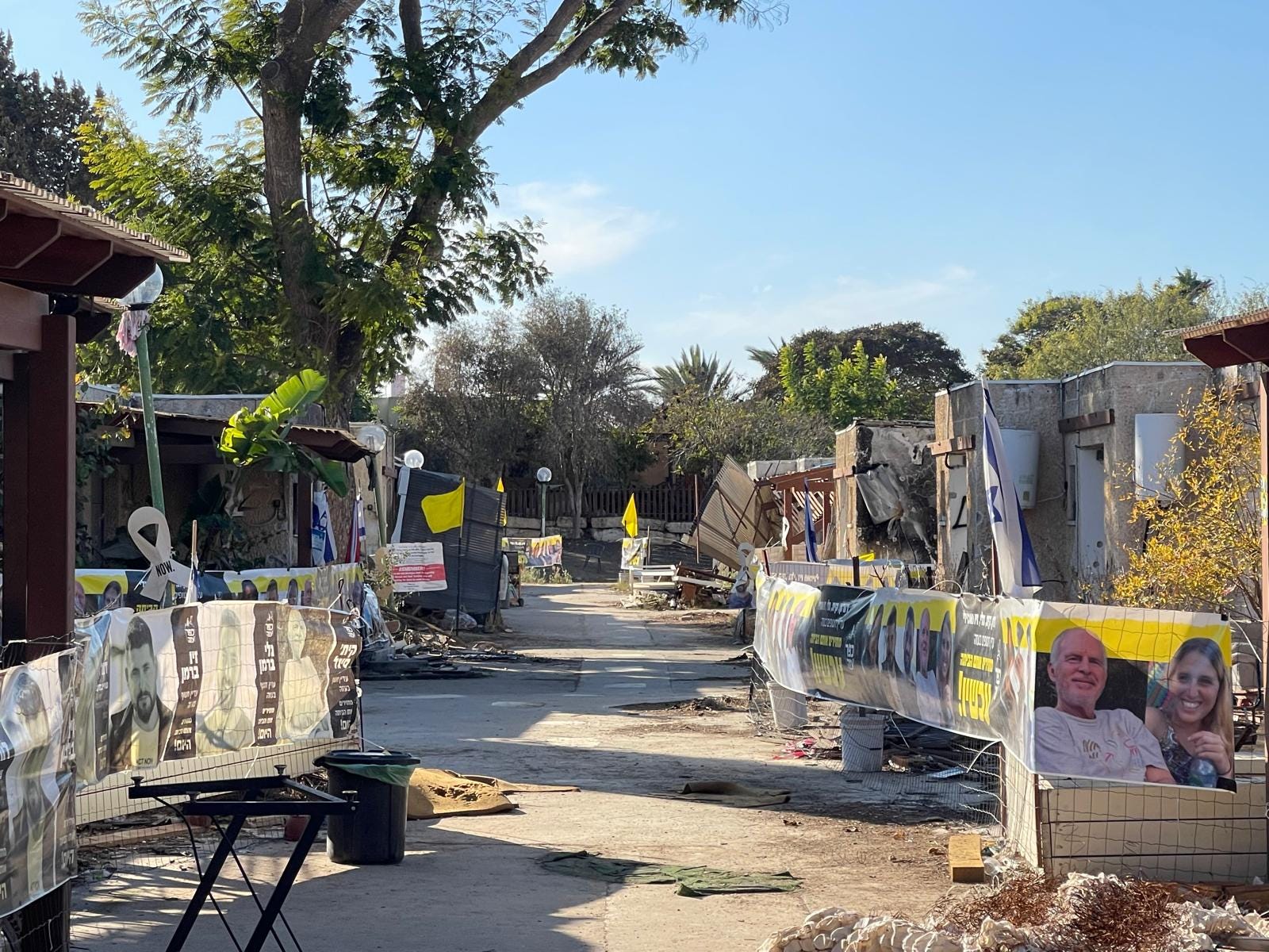 This neighborhood is also very close to the fence separating the kibbutz from the Gaza Strip. And it remains an incinerated husk of what once was. It became a cyclone of madness and slaughter on October 7. Most of the young people living there were murdered. Many were burned alive. Four remain in Hamas captivity. 422 days on.