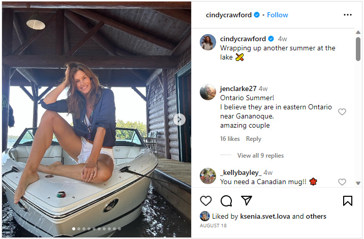 Supermodel Cindy Crawford shouted out that she and her husband hosted Shaq and others at their island retreat in the same area, bringing bling and cachet, for some. (And the commenter on Crawford’s post has it wrong. Her island retreat is in the Muskoka area, not eastern Ontario.)