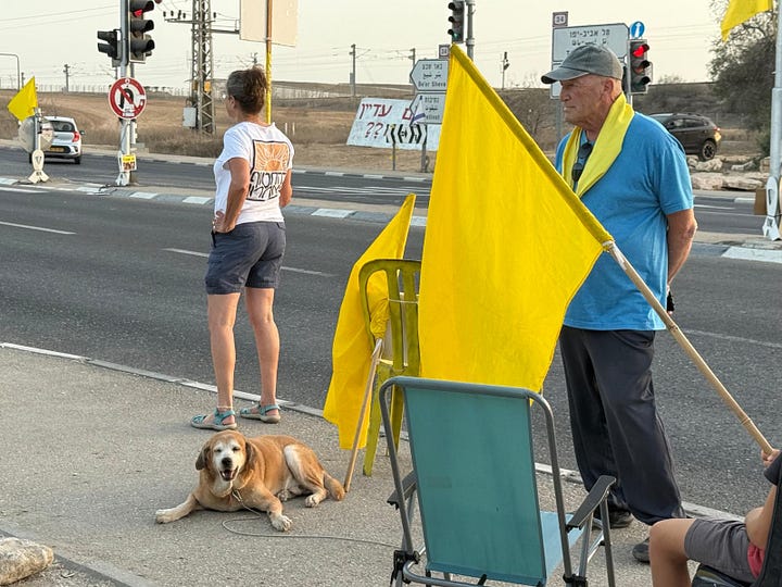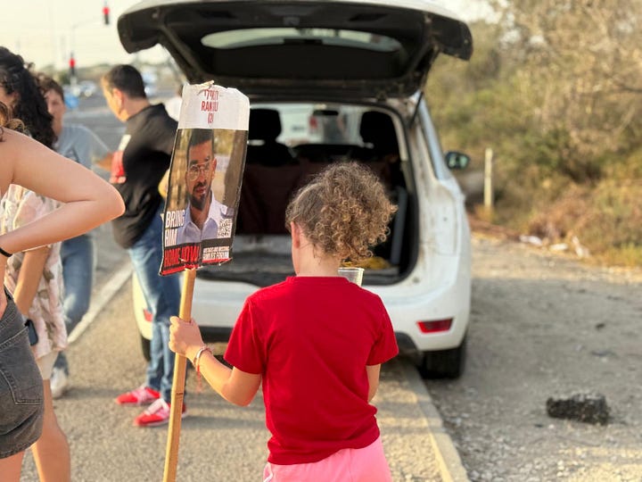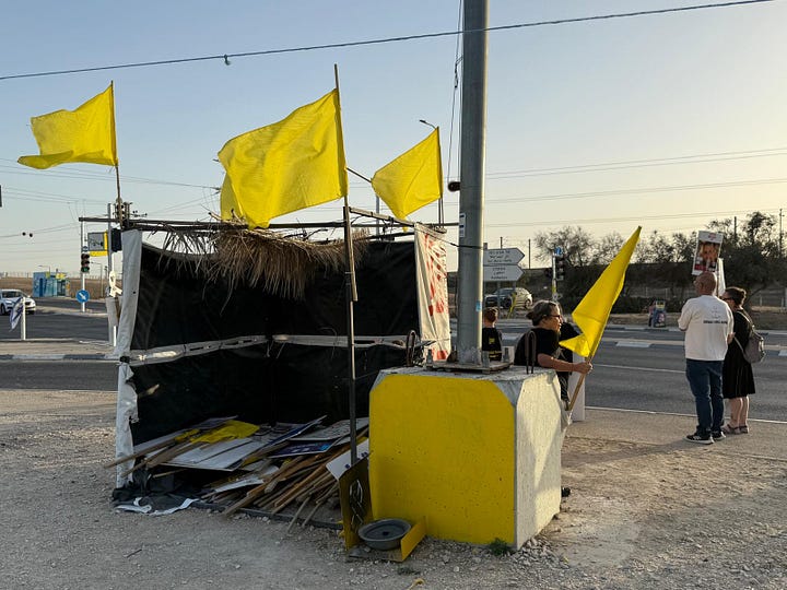 Late Friday afternoon, I went to a major junction in southern Israel - Sha’ar HaNegev (which translates to “Gate of the Negev”). Here we come together to remember those who remain behind, every Friday evening and again on Saturday night. As you will see from the photos and videos below, it is very much a community event. Such moments are so important for maintaining collective resolve and morale. And we hope that the hostages know, somehow, that we never flag.